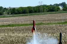 2025-05-183D  Flight It flew... badly, to be honest, spinning and flying downrange to the north. It was recovered with no visible damage but will not be flown again. - A10-3 - Fairfax Society of Rocketry Site [More]