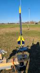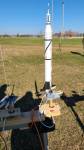 Wind cocked a bit. Parachute tangled but in the shock cord and did not open. Broke nose cone at joint but easily repaired with epoxy. - G54-6 - Pence Indiana [More]