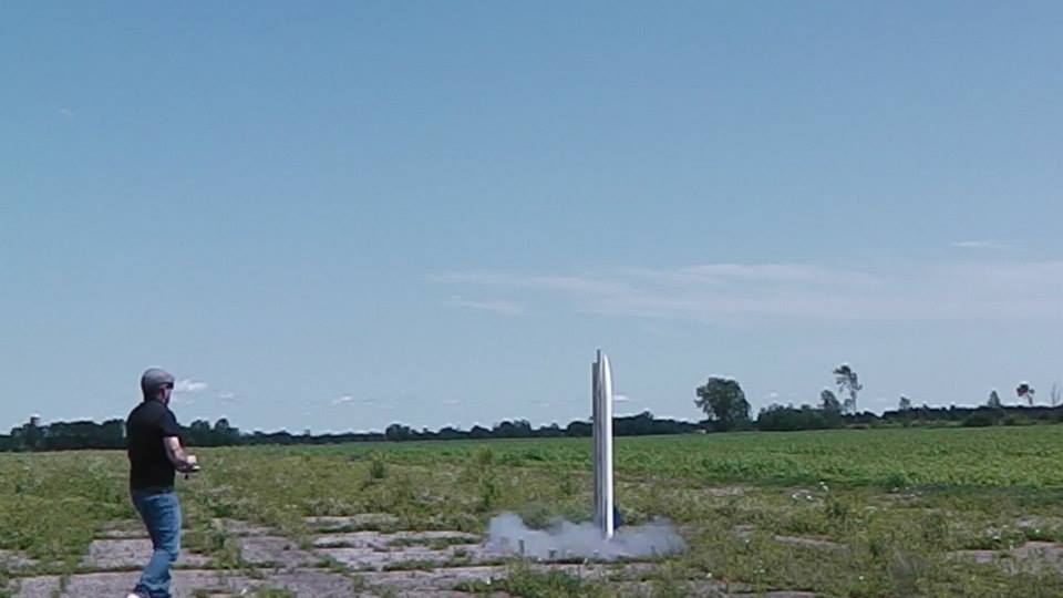 In this photo flames shoot out the back end of my Super X Mail Rocket. The USA & CANADA Friendship Flight carried mail on board that was also launched inside a rocket this summer in Oklahoma. Very cool.