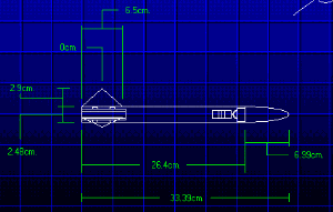 Now that a rocket is designed it is ready to be simulated. Rockets 3 provides two Utilities and they must be run in sequence (a common theme of the program). The first utility is the Stabilizer. By selecting that menu choice a new screen is build as a woman states, "stabilization mode". By pressing the Start button she then says, "calculating stability", and in my case she then says, "design is not stable". You can then press the Stabilize button and the program will determine how to stabilize the project. In my case it added 10 grams of weight to the nose.