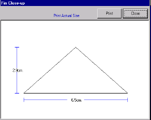 You can do a Fin Close-Up, which then has a print button to allow you to print your fin diagram in actual size. A parts list is also available for printing which contains all the parts specifications. And the overall design screen can be printed.
