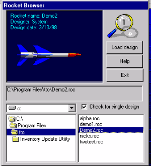 Rockets 3 includes another feature that should not go without mentioning. The Browser. This is nice. It allows you to preview the rocket diagram in 3D while scrolling through your rocket directory. A very nice touch and something that I would love to have for many programs.
