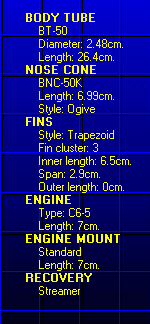 The last step in design is choosing your recovery device. There are a couple of parachutes and a streamer to choose from, however, as most other components you can add to the inventory.