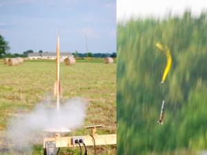 It was a high, straight flight with just a bit of spin; when the streamer deployed, it began to drift a lot more than you'd expect, and it landed about a foot from the shore of the pond.