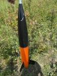 The second flight for the Minion 6 on the J800 yet again. The rocket is a 6" stubby rocket that weighed 20.5lbs on the pad. The rocket arced away from the launch area and landed about 300' off of Suz Road in the field, visible from the road thanks to the fluorescent pink and green x-type topflight parachute. The J800 is a great "Bong" motor with a peak thrust of 1,001 newtons but burns for a short 1.5 seconds. This gives the rocket an abundance of thrust off the pad but only propels it to about 2,000' giving it less time to get in trouble with the trees or water that surround the launch area.