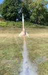 Dead straight off the pad to a surprising altitude. Parachute deployed and the spill hole helped it to recover on the baseball field between third and short.