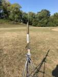 Standard B6-4 flight for the day, straight, stable boost with a slight lean away from the pad, then ejection over deep center field just as it tipped over. The ejection charge fired and broke the shock cord, causing the two pieces to fall to the field. No damage except for the shock cord