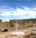 Test flight after repairs from last altitude record setting attempt in March. Carried extra weight of video recorder (battery failed--no video), and caught in a gust causing some wind-cocking. Otherwise a successful, if low flight, and successful recovery deployment. Ready for next launch with B engines and video attempt.
