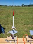 Launch the IQSY Tomahawk. Used a 1/2A due to the wind. Really nice flight, slightly arching into the wind. Probably made about 300'. Streamer did not deploy but tumble recovered just fine.