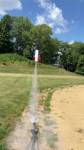 An oddity on the day. Flew to the right and behind me off the pad. Looked to be in loads of trouble early because of either the locked Birdcage, US 27 or the baseball backstop, but settled for shooting the gap and landing in between the three on the pavement.