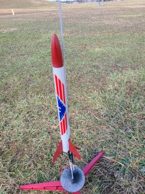 One of the thin plastic fins is warped, so I was interested to see if it would impact the flight. It did not. No rotation to the rocket and a straight flight.