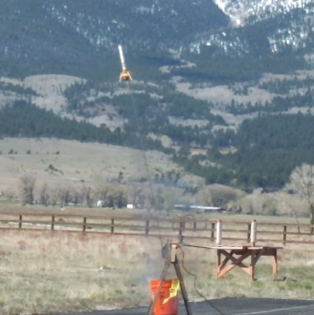 This version has the extended body tube that was tried in the 2nd flight, but Spin Sails were added to the 3 outriggers to induce spin.