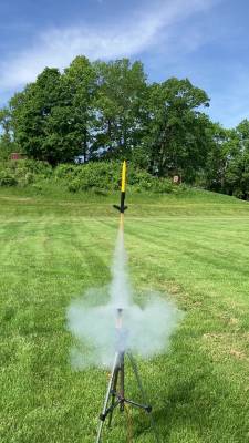 Right off the pad over the infield. Excellent altitude as expected for a minimum diameter bird. Landed in the hole behind second base.