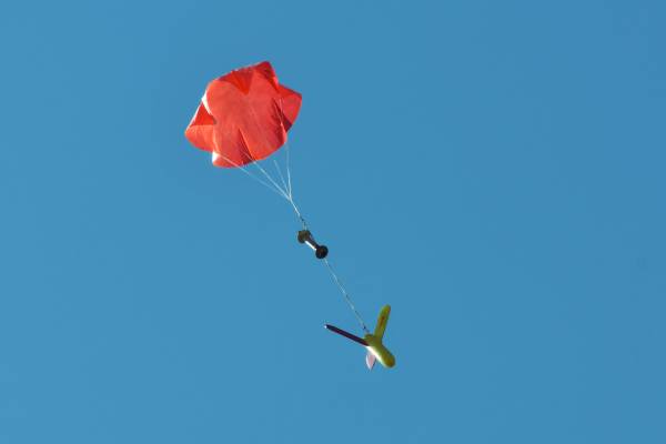 It was a good flight, weathercocking somewhat, with an excellent deployment; the rocket drifted back over the launch area and landed in the grassy parking area with no evident damage. This is the 21st flight for this rocket, still wearing the same paint job (but with some small battle scars to show for it).