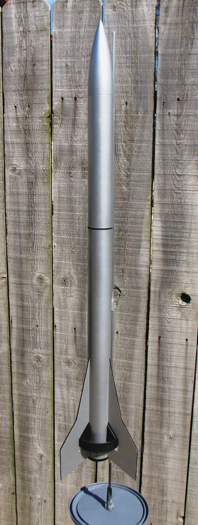 The Ion Challenger 3D kit kit comes with a 4.75” BT-60 ogive plastic nose cone; 1.64” diameter (BT-60) 17” and 8 1/2” white paper airframe tubes; 3” diameter tail ring; 2” tube coupler; 8.25” 24mm motor mount tube; 1”- 24mm spacer for 70mm motors; (3) 1/8” and (3) 3/8” thick birch plywood fins; (2) .05” thick laser-cut fiber centering rings; 18” mylar parachute; 5’ Kevlar shock cord and 3/16” launch lugs. The kit features a Through-The-Wall (TTW) 1/8” outer fin set and surface mount 3/8” center fins.