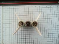 Note: it would have been easier to attach the 3 mmt together first, with the rectangles, THEN to attach the fins. As the three mmts could lay flat on a surface to insure perfect alignment. Noted for next time.