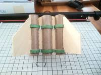 Cut out 4 fins with TTW tabs out of 1/8 basswood or birch. Also cut out rectangles measureing 4in x 5/8" (current guess).