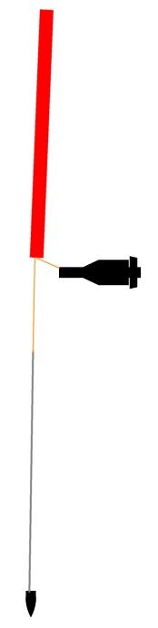 The Kevlar® string extends a long way from the body and the elastic is nice and long too. The heavy nose cone could give your AA-9 Amos "Estes Dents" if the shock cord was shorter, so kudos to Blackhawk R&D for thinking this through. The best way to attach the recovery system is to tie the elastic to the Kevlar®, and the elastic to the nose cone. Measure about 6" in along the Kevlar® thread from the body tube, attach the streamer here. This will allow the rocket to descend as shown in the diagram. I was in doubt whether the streamer would be enough, but I was wrong.