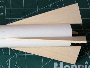 Once all the fins were attached I proceeded to form the conduits. ASP provides ¼" and 3/16" square balsa stock to cut down and form into the correct shape. This takes a little bit of sanding but actually goes quite quickly. Once again, ASP gives pretty detail instructions on what the shape should be and the lengths of the pieces.