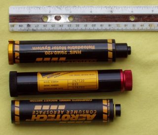 Although this product was introduced at LDRS 23 in July 2004, my casing (S/N 037) has a manufacturing date of 1/8/02. This product was obviously in the works for a while. The case is new and is not interchangeable with the 29/40-120, but the closures are the same as those used with the 29mm high power cases.