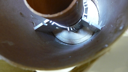 I had to reduce the tang on the stock plastic fins in order to accommodate the larger MMT and the GROOVE-LOK. I used a power miter saw to cut them slightly larger than needed, then fit them with a file. Care must be used not to let the plastic piece get too hot and start to melt - just take a bit at a time. I bought a 6" GROOVE-LOK but cut it to fit between the two rear centering rings that encased the fin tangs (picture). The fins were 6-filleted with 30-minute epoxy.