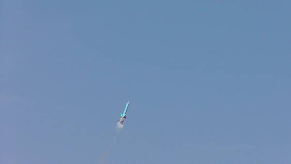 All three stage 2 motors have just lit and the three IRVs pull away from the booster.