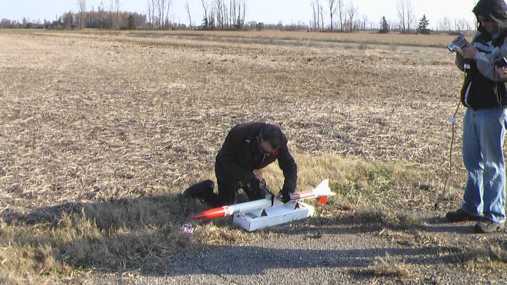 Getting ready to launch Canadian rocket mail on October 31st, 2011.
