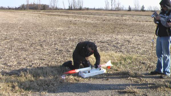 ARCAS launch commander Ashley McIsaac is securing 'gopro' camera to side of launch vehicle minutes before lift off on October 31st,2011.