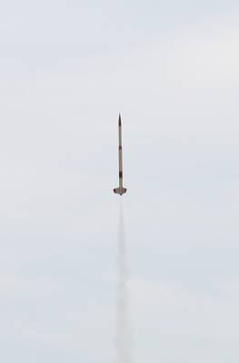 This rocket is a stock-build of an Estes PS2 Argent. The only changes made were to the recovery harness - the (lengthened) shock cord was looped around the motor mount and the parachute attached with a snap swivel. Decals are from StickerShock23.
