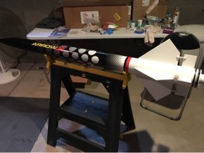I'd recently renewed my Tripoli membership and recertified Level 1 after having been out of the hobby for several years, and I was ready to move on to something bigger for L2. After learning Scott Binder was back in business under his new Fusion brand, I had figured on picking up a Thor. It had been at the top of my wish list years ago, but then I saw the new Arrow X on his website and was hooked. I loved the styling and added details like the fin doublers and nozzle.