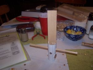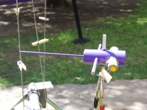 The instructions recommend a couple of light coats of sealer or a light coat of paint. Since I was building this for a demo to some elementary school kids at the local museum, I elected to go the paint route and chose purple. I gave it just one good coat. The instructions warn against using too much and throwing off the balance.