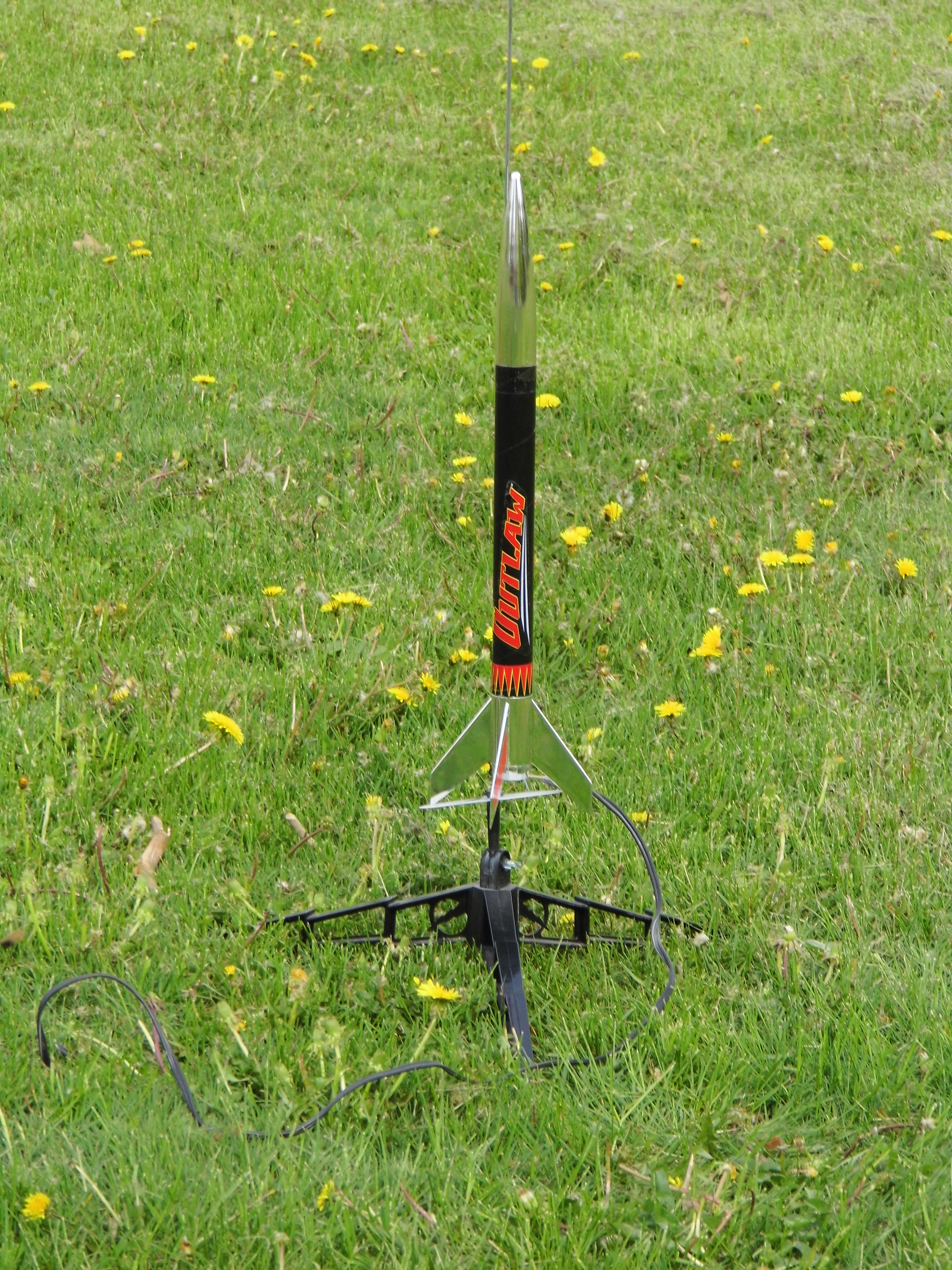 One of two rockets that come in the 1452 LAUNCHABLES™ STARTER SET from Estes. The Astron® Outlaw™ features Chrome plated NC, fin can and fins. Projected altitude is 600' on a C6-5