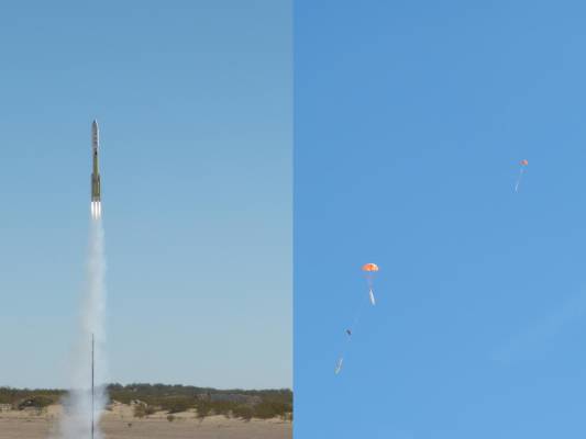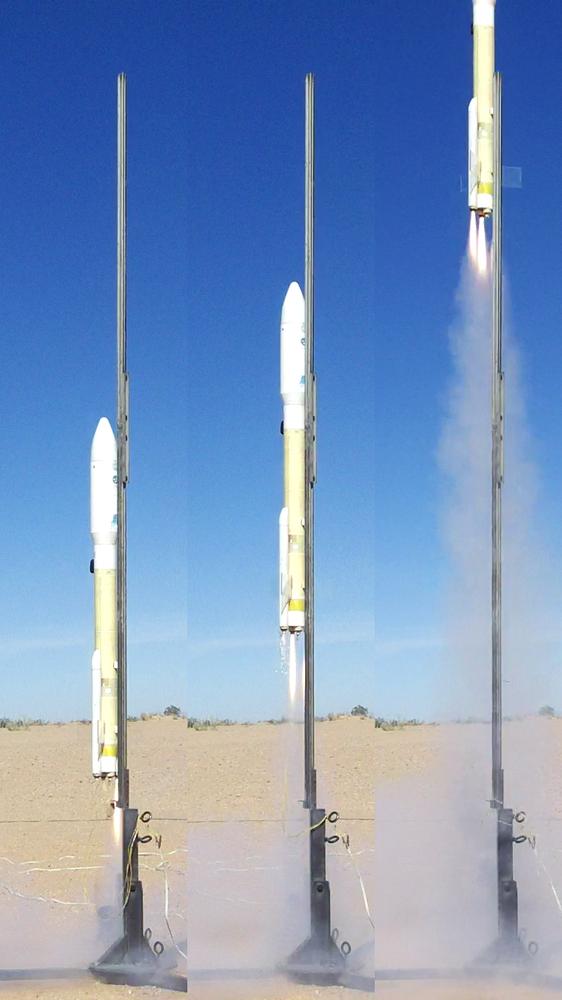 Three of four motors ignited; one booster hung up at jettison; got all the pieces back.