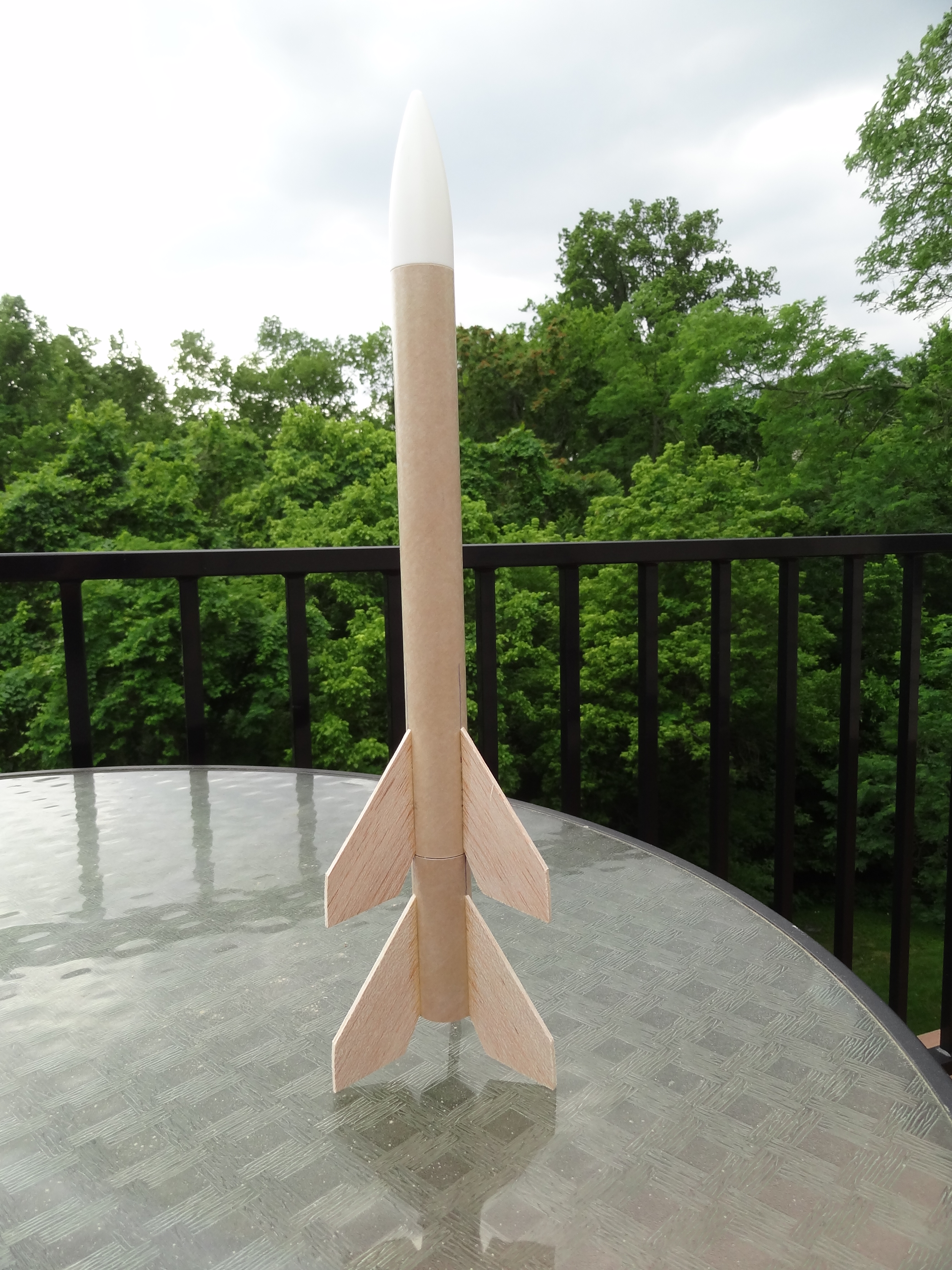 This is a basic 3FNC two-stage rocket with direct staging. The fins on the booster and sustainer are identical, giving it a look that is just a bit different from other two-stage rockets. The parts list: 1 Nose cone, plastic blow-molded 1 Elastic shock cord 1 BT-50 sustainer body 1 BT-50 booster body 1 Tube coupler BT-50 6 Fins, die cut balsa 2 Motor mount tubes BT-20 ...