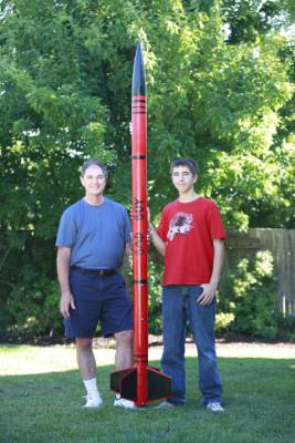 A tall, 4 inch rocket with a 54mm motor mount. Fiberglass Reinforced shockwave tubing. 5:1 ogive plastic nose. Plywood fins.