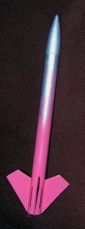 Now it is important to mention something very important about the photo. My daughter wanted to make something more creative than a standard 4FNC rocket so she designed an alternative use of the fins. She decided to use the "wrong" root edge and then to surface mount them between the slots. She also painted the motor tube red and installed it last to create the effect of a glowing interior "radiator tube" beneath the surface of the airframe. The new fin orientation required some nose weight to maintain stability.