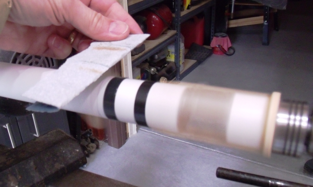 This rocket also features a custom wood lathe turned nose cone, made from pine.
