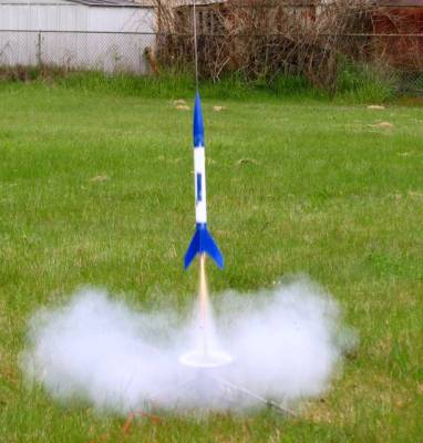 Angled launch into wind about 5 degrees. Typical Athena RTF A8-3 flight - just about picture perfect with good deploy and 'chute. Landed within 100 feet downwind of pad on playfield. Rain drops starting....