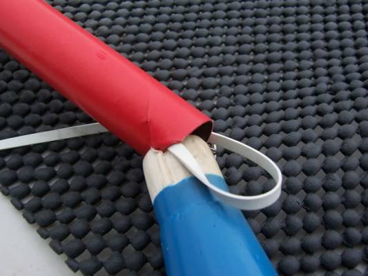 _Big_ Estes dent. Body tube crumpled and payload adapter slotted. Ejected going up. Partially deployed 'chute, but came down with payload adapter stuck in body at an angle. No additional damage from landing. Repairable.