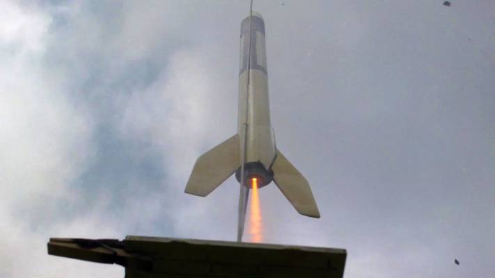 The Big Bertha: Is a very old model built in the 1970s by my brother. Very popular model, you probably have this or one of its many derivatives yourself. This rocket is the classic '70s kit. It is big, fat, slow flier with a retro look. This one isn't retro-"looking" though; it's the real retro thing. It is painted in the original mid-70’s catalog scheme, but with a lighter - more 50's style - cream yellow. I would prefer the newer all-black look Estes is showing now, or maybe some red/white/blue patriotic scheme.
