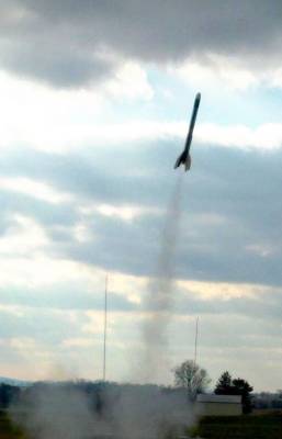 The Big Bertha: Is a very old model built in the 1970s by my brother. Very popular model, you probably have this or one of its many derivatives yourself. This rocket is the classic '70s kit. It is big, fat, slow flier with a retro look. This one isn't retro-"looking" though; it's the real retro thing. It is painted in the original mid-70’s catalog scheme, but with a lighter - more 50's style - cream yellow. I would prefer the newer all-black look Estes is showing now, or maybe some red/white/blue patriotic scheme.