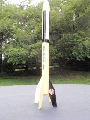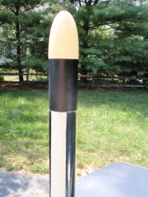 The Big Bertha: Is a very old model built in the 1970s by my brother. Very popular model, you probably have this or one of its many derivatives yourself. This rocket is the classic '70s kit. It is big, fat, slow flier with a retro look. This one isn't retro-"looking" though; it's the real retro thing. It is painted in the original mid-70’s catalog scheme, but with a lighter - more 50's style - cream yellow. I would prefer the newer all-black look Estes is showing now, or maybe some red/white/blue patriotic scheme.