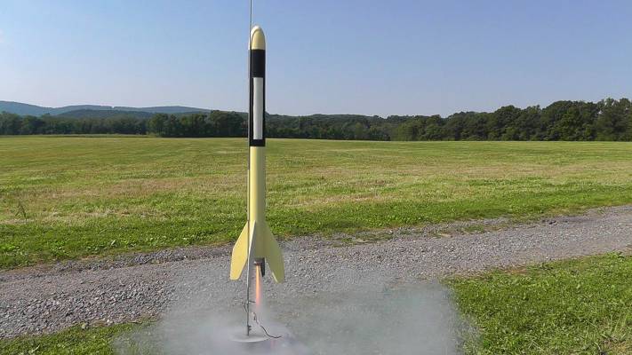 It sure eats a lot of wadding with that big BT60 tube! I installed a Nomex cloth so it will never need wadding again, and a nylon cloth parachute. I have modified this rocket with my "Iris" altimeter bay, which adds another 2.88 inches in length and 14.6 grams of weight. (Iris is named after the Greek god of the rainbow. She is a messenger of the gods, linking the gods with humanity.) This model always seemed to weathercock a lot for me, I hoped that the extra nose-weight of the newly added payload would have helped a bit, but it just slowed it down some more, the Nomex and heavier Nylon cloth didn't help either, I just made Big Bertha into Big & Heavy Bertha. With a C6 motor his rocket has flown higher than the the Saturn V Apollo spacecraft, and the famous Spire of Dublin. But with the extra weight and drag I added, this slow flier seems to always be sensitive to the wind.