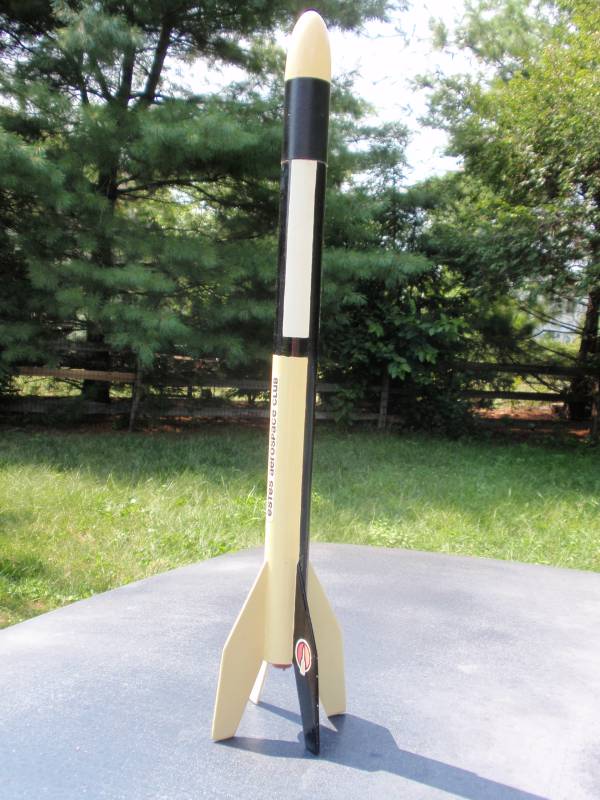 Big Bertha with Iris PayloadThe payload section adds 2.88" to the length of a stock Big Bertha. This classic was built in 1977 by my brother. In addition to the payload section, it now sports a nylon parachute and nomex cloth to eliminate the use of wadding. |