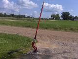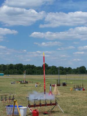Two Prowler kits combined into one rocket. Modified from 18mm mount to 24mm. Fins are made from heavy cardboard, then covered with aluminum duct tape.