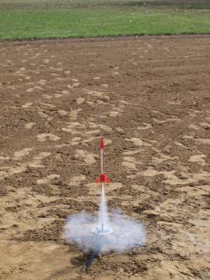 Quick flight. Bought this for my nephew to build and fly at NARAM, but he wasn't interested. I put it together while I was watching a movie this winter, just to have something to do. Huge fireball at ejection and the charge sounded like a gunshot. Top of the motor casing was burned pretty badly, but I couldn't find any damage to the rocket.