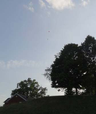 Straight up flight with recovery up the hill to the west.  Would have been trouble with a full chute, but it wadded until the rocket was well safe of drifting into the trees.
