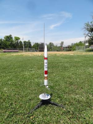 Excellent flight.  Windcocked slightly, but the whole flight took place over the field.  The shock cord in this one won't last long.  I put an extra piece of wadding in over top of the motor, but that might buy me a flight or two.