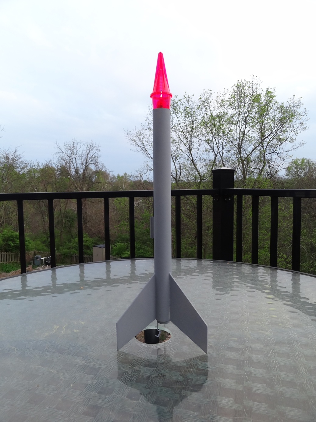 Third of my night launch rockets built with the Night Bobby fishing bobber from the Wal-Mart sporting goods department. This one is red.
