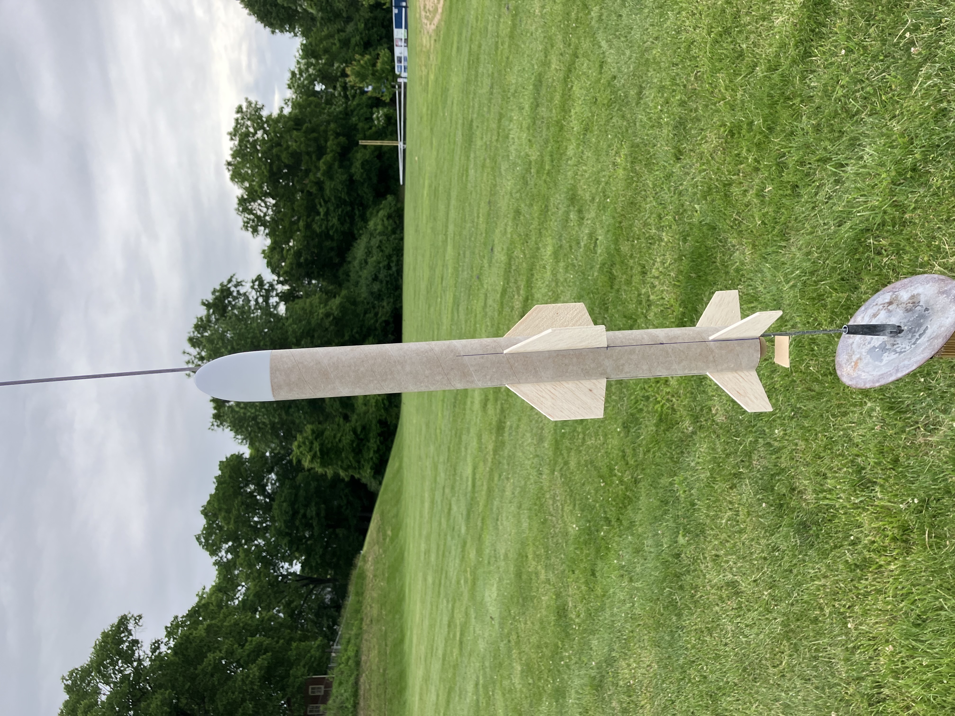 Shakedown flight, so loaded with an A8-3 at the field despite being loaded with a B6-4 at home. Lost my nerve. Flight was perfect, topping out around 150' and ejecting as it tipped over. Landed behind the flightline. Didn't get the button pressed, so no flight movie.